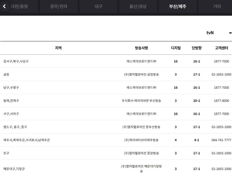 tvN 채널번호