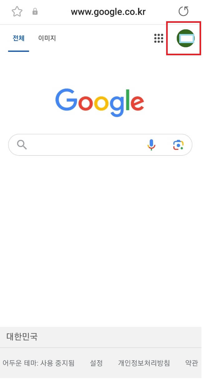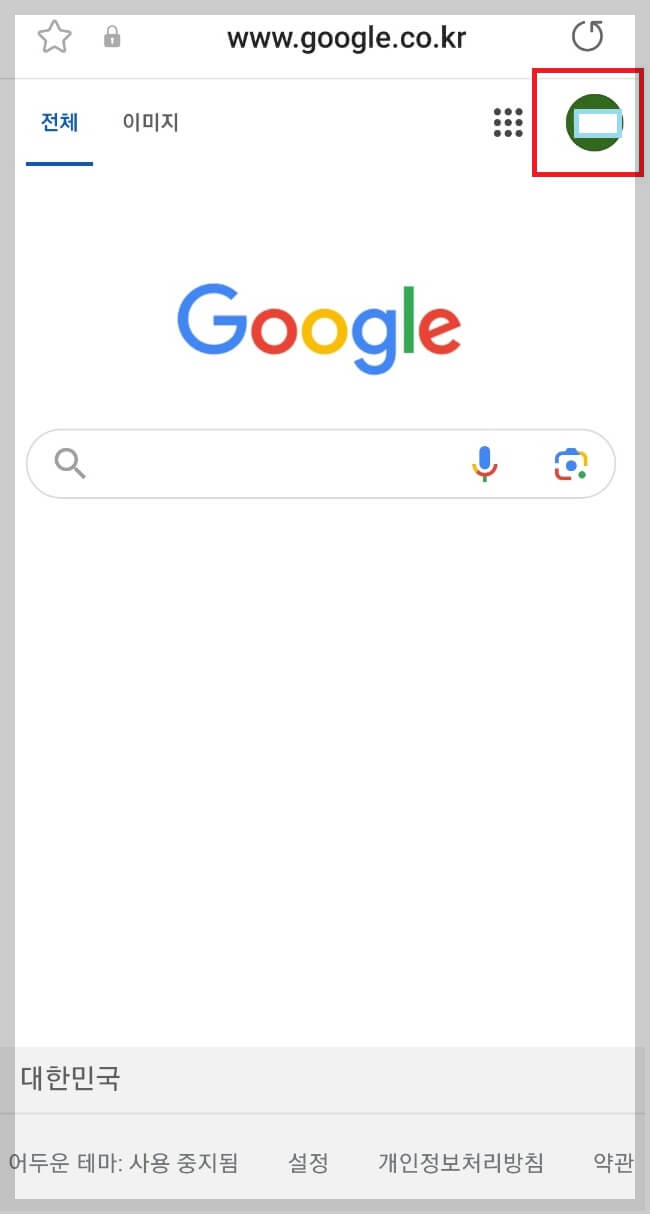 1) 구글 메인 페이지 우측상단에 파비콘을 선택합니다.