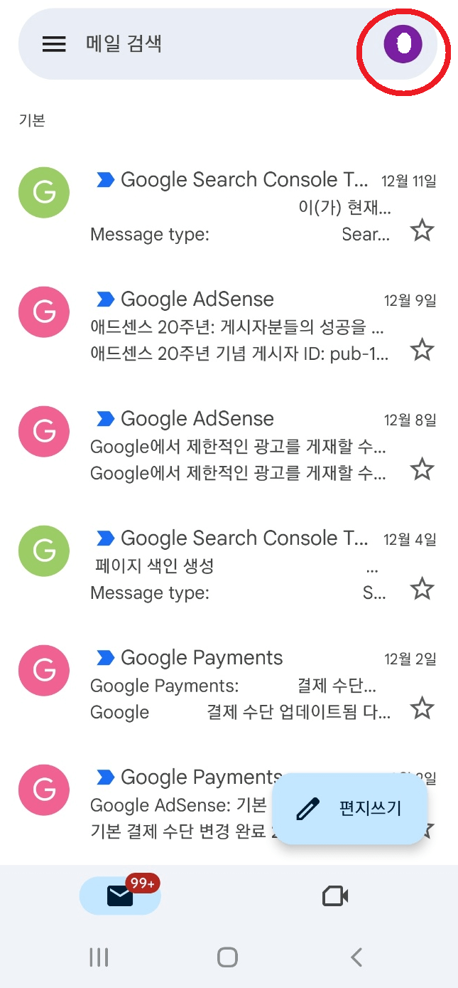 1. 핸드폰에서 Gmail 어플을 엽니다.