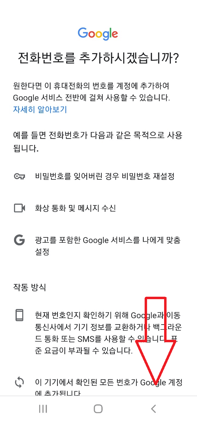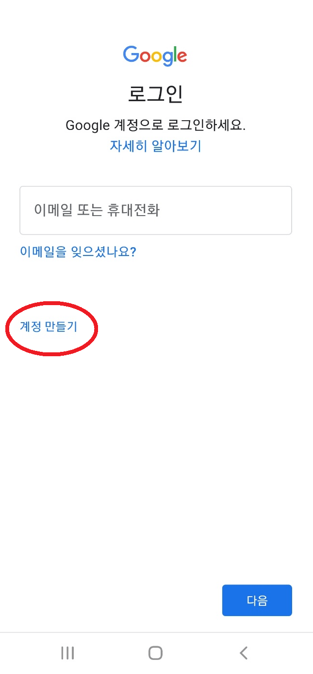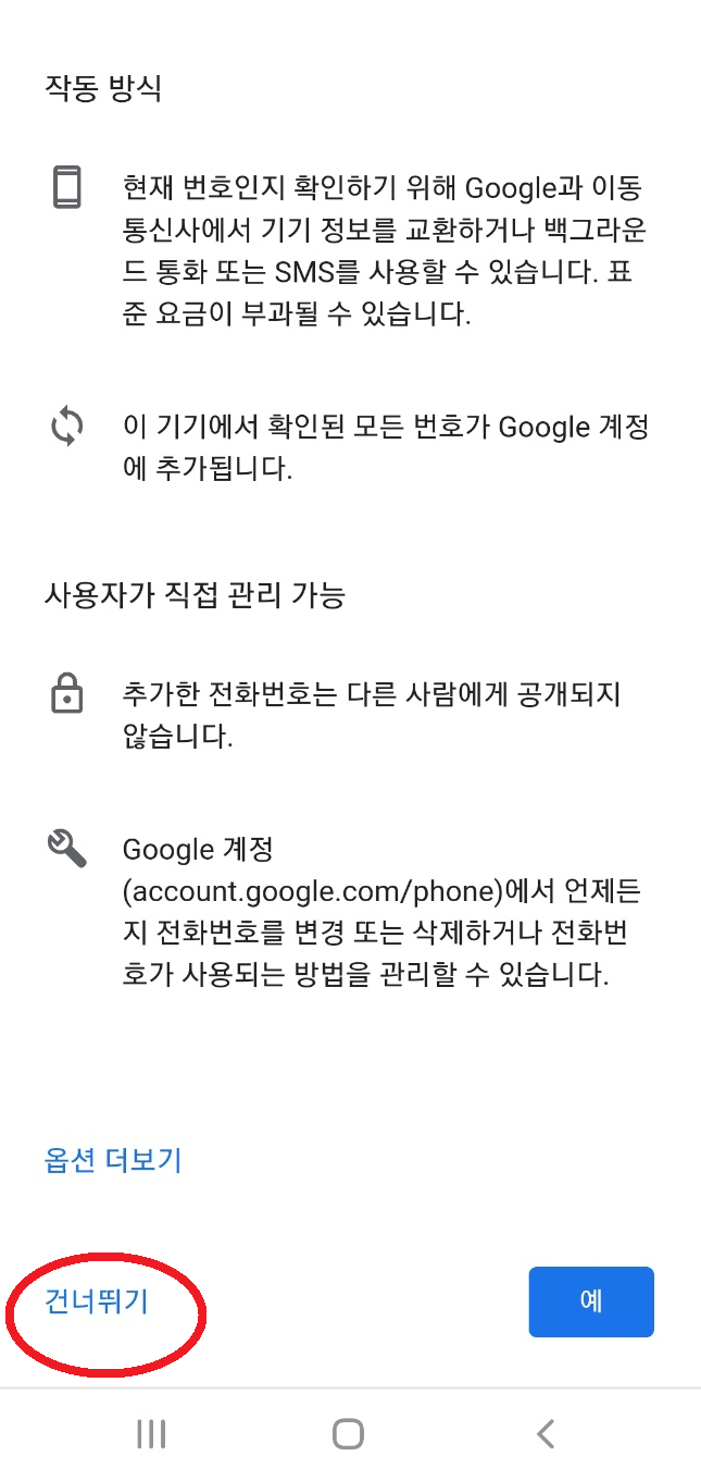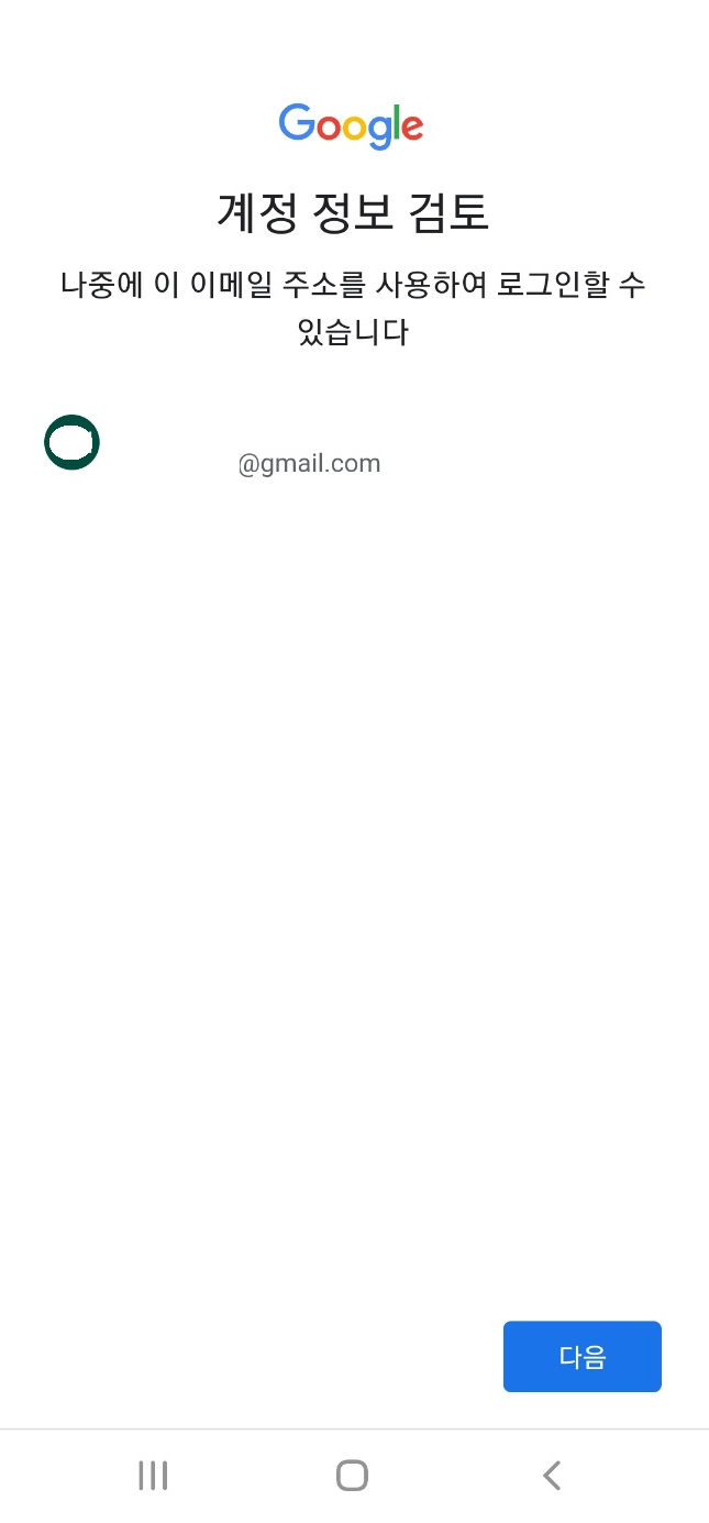 5. 전화번호 추가하시겠습니까? 페이지에서 스크롤을 내려 맨 아래 '건너뛰기'를 클릭합니다. 그러면 방금 만든 계정이 나타납니다. 우측 하단의 '다음'을 눌러주세요.