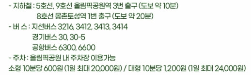 공연장 가능 방법 (대중교통 - 버스, 지하철, 자가용 - 주차비)는 아래와 같습니다.