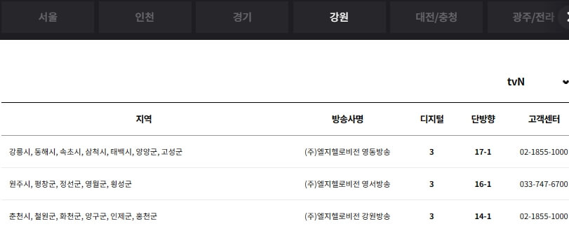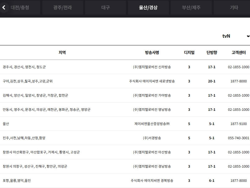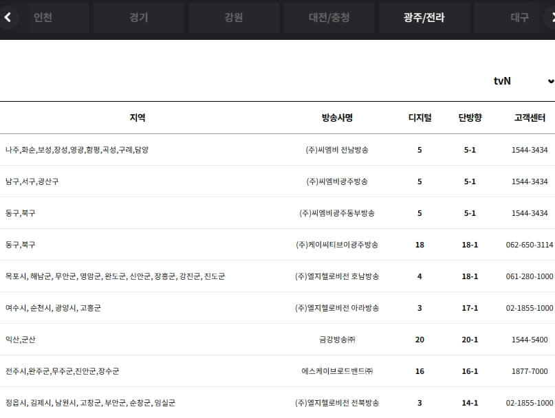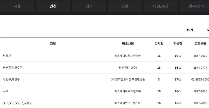 tvN 채널번호
